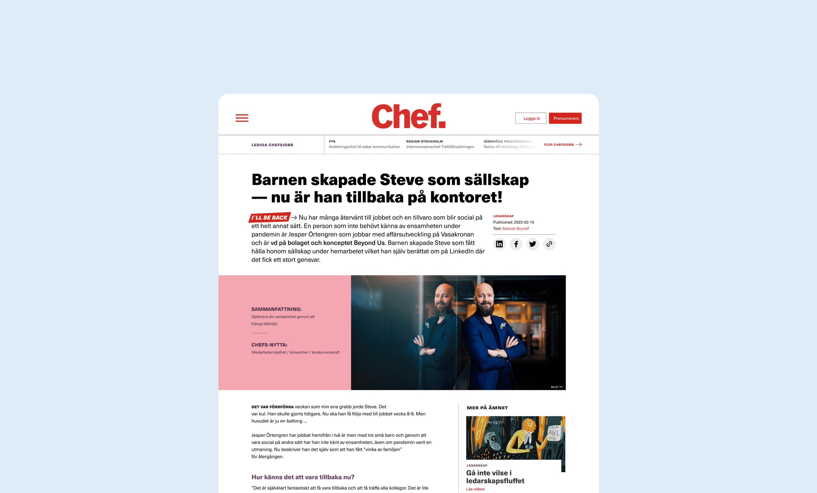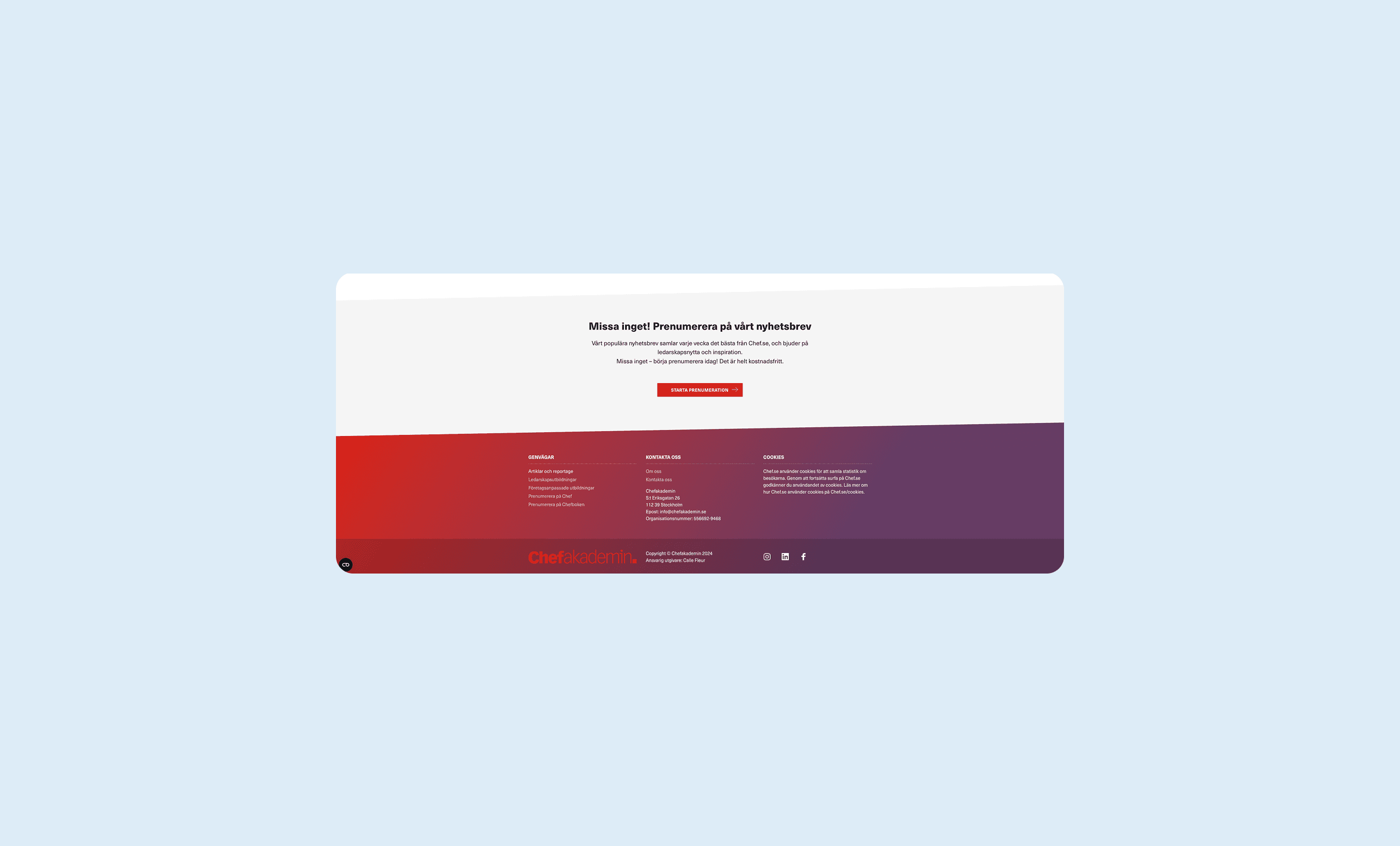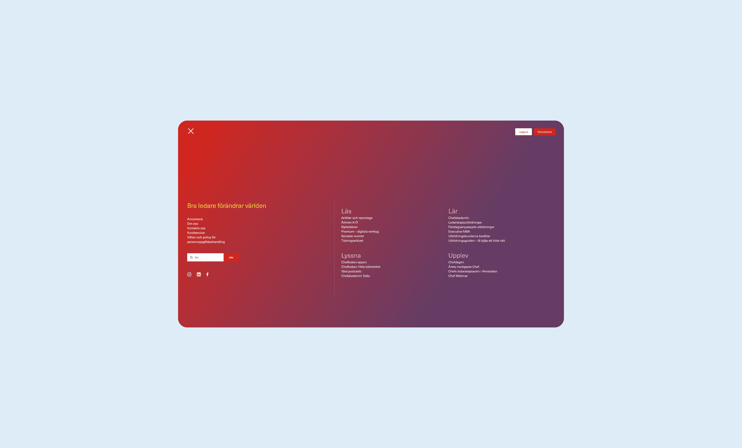 Chef is a magazine and educational platform for managers that merged with Chefakademin and Mgruppen in 2021. Each organization contributed distinct forms of expertise—editorial content, leadership education, and training programs—which needed to be consolidated under a single platform at chef.se. My role as UX/UI Designer was to design a unified experience that allowed users to clearly understand different content types while supporting the transition into a new, shared brand and visual language.